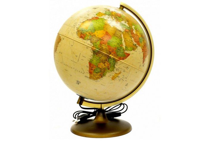Průměr : 25 cm Výška: 36 cm Měřítko: 1 : 51 000 000 Světelný glóbus, soudobá politická mapa antického vzhledu, s vyznačením plaveb dávných mořeplavců. Půlpoledník – imitace kovu, podstavec je z afrického dřeva. Dárková odnosná krabice. Popisky- český jazyk. Vyrobeno v EU.
