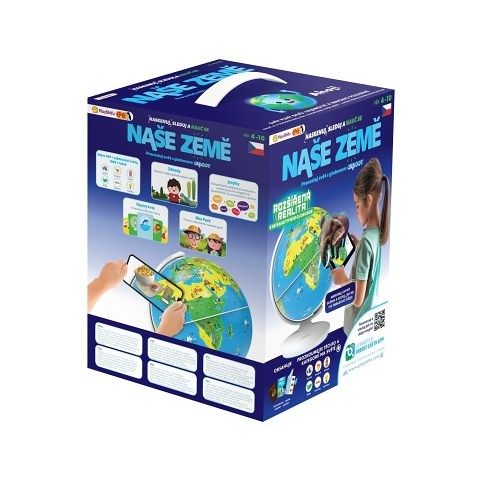 Interaktivní Globus, se kterým se dozvíte mnoho nových věcí a užijete spoustu zábavy. Prozkoumejte více než 400 zajímavostí a více než 1000 faktů napříč 6ti kategoriemi – kultura, kuchyně, památky, vynálezy, zvířata a mapy. Pomocí vašeho zařízení a prostřednictvím stažené aplikace můžete prozkoumat svět. V balení naleznete Globus, krátký návod, cestovní pas, knížku s nálepkami a razítko. Hračka nevyžaduje baterie. Doporučený věk 4 roky.
