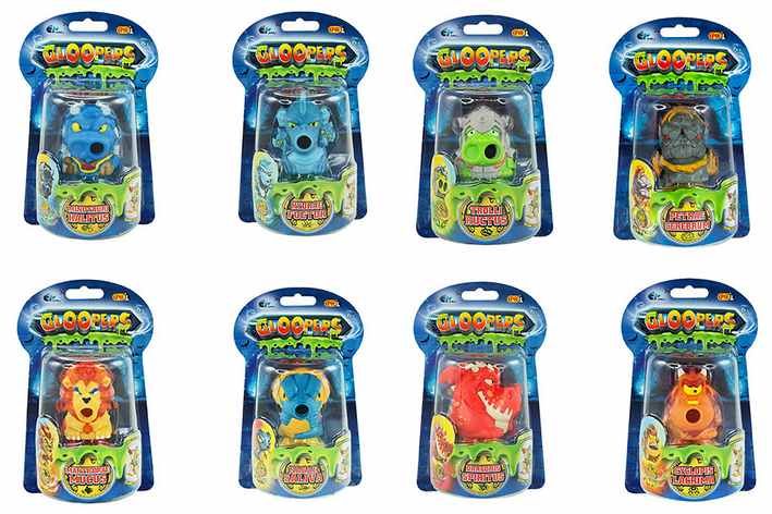 Toto jsou Gloopers, příšerky, které vcucnou snad každý sliz, na který zrovna narazí. A umí ho taky pěkně plivat kolem sebe. Zmáčkněte figurku a nasajte sliz příslušným otvorem na ústech nebo nosu. Pak figurku opět zmáčkněte a PLIV….. sliz je zase venku. Sbírejte je a užijte si ještě více slizské zábavy. Každou figurku lze připevnit na baňku, ve které je sliz. Sada obsahuje figurku Gloopers a baňku se slizem. Pro děti od 6 let.