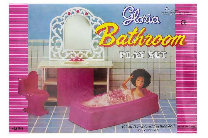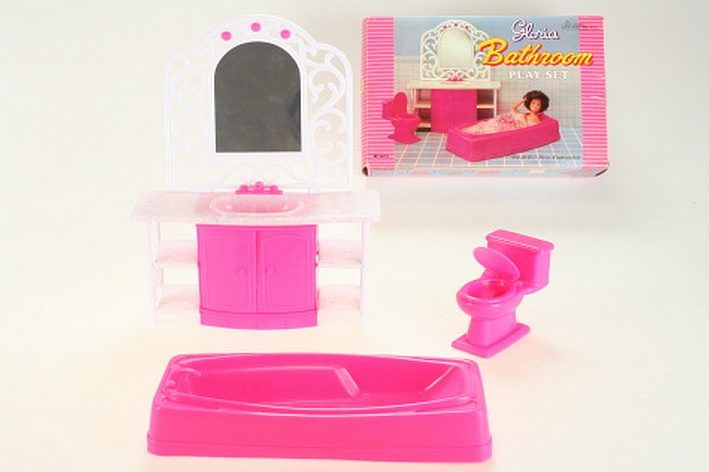 Glorie Koupelna obsahuje plastovou vanu o rozměrech cca 26,5 cm x 12,5 cm x 4,6 cm, plastový záchod cca 10 cm x 6,5 cm x 9,5 cm a koupelnovou stěnu se zrcadlem o rozměrech cca 24 x 7,5 x 31 cm. Panenka není součástí balení.