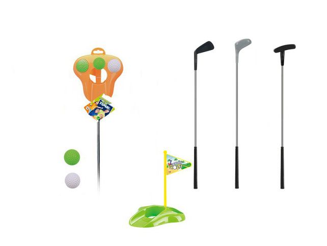 Golfová sada hůl s míčky a jamkou. Obsah balení - golfová hůl, jamka, 2x míček. Délka hole 62 cm. Více variant.