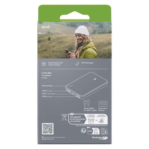 GP Powerbanka GP B+ Series, 5 000 mAh, 12 W, zelenošedá