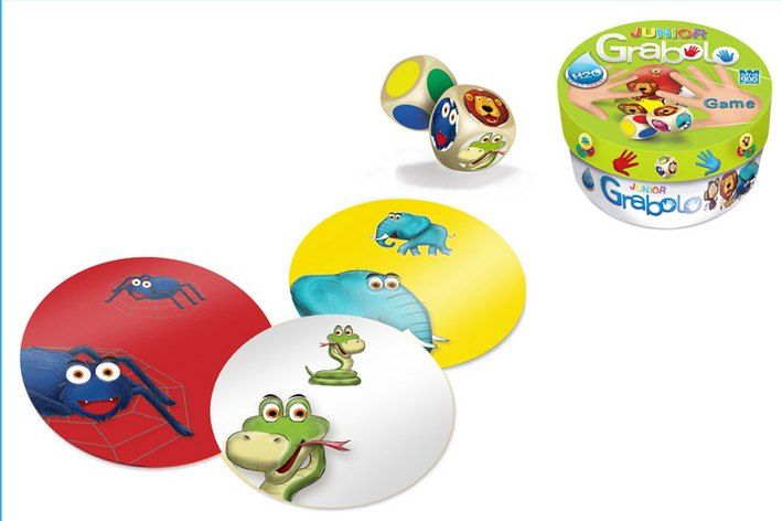 Dokaž, že máš u stolu nejlepší oči a nejrychlejší ruce. Kostky určí kombinaci barvy a čísla a ty musíš rychle reagovat. Grabolo – divoká zábava pro všechny. Hra GRABOLO je prodávána v luxusní plechové krabičce. Karty jsou plastové a vodě odolné, takže není problém hrát hru i u vody, na párty nebo kdekoliv se vám zlíbí.