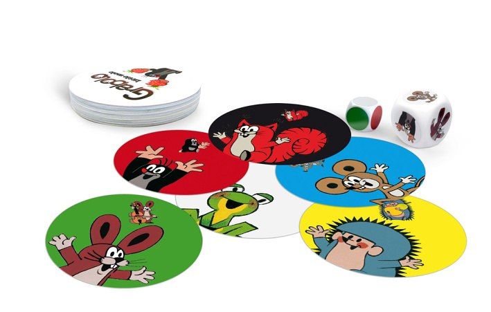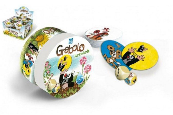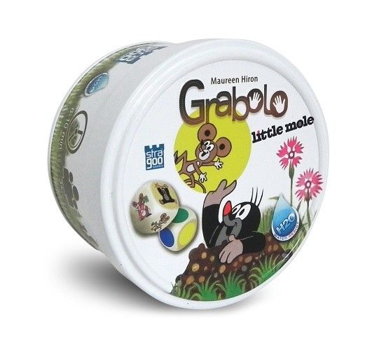 Dětská verze oblíbené postřehové hry GRABOLO, tentokrát s oblíbeným Krtečkem a jeho kamarády. Dokaž, že máš u stolu nejlepší oči a nejrychlejší ruce. Kostky určí kombinaci barvy a obrázku, ty musíš rychle reagovat. Cílem hry je získat předepsaný počet karet. Plechová krabička obsahuje 36 plastových voděodolných karet, 1 barevnou a 1 obrázkovou kostku. Hra je určena pro 3 - 5 hráčů, trvá 8 - 10 minut, doporučený věk 3 - 99 let.
