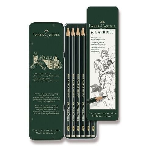Grafitová tužka Faber-Castell Castell 9000 6 ks, plechová krabička