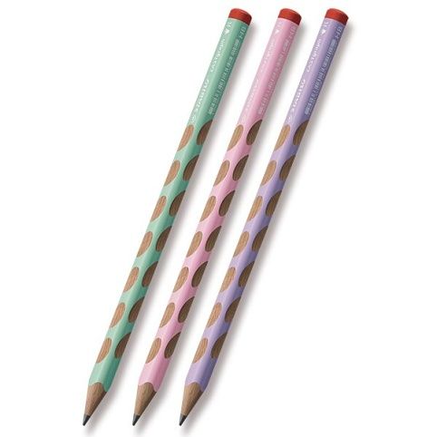 Grafitová tužka STABILO EASYgraph v pastelových barvách, jejíž ergonomie je zcela přizpůsobená potřebám praváků.