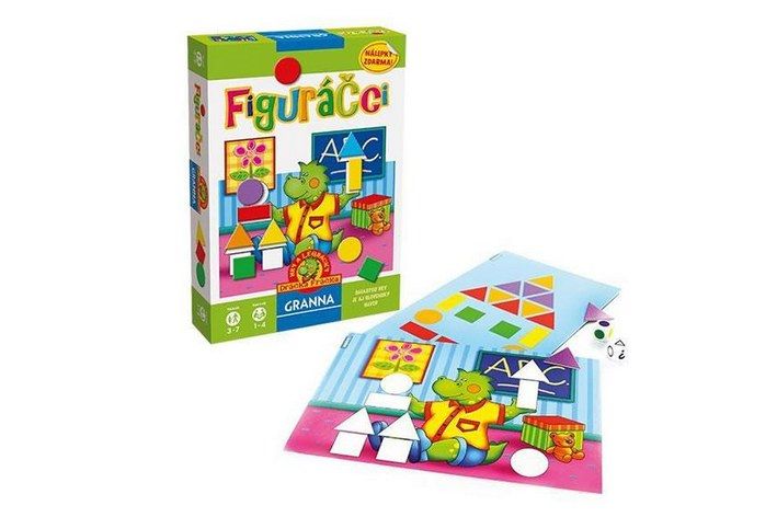72 barevných geometrických obrazců (trojúhelníků, obdélníků, kruhů a čtverců),