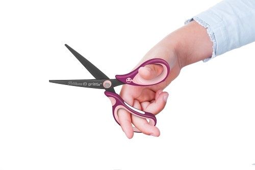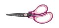 Kulatá čepel, 3 x silnější než normální nůžky a to díky nitrid titanu, ergonomická rukojeť, pro praváky, indikátor správného držení (smajlík), jmenovka, 25 let záruka,fialová