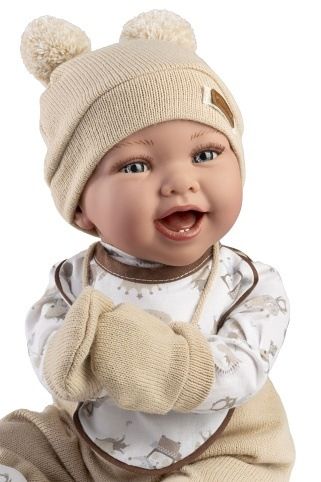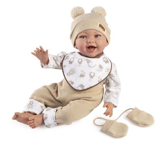 Panenka miminko bez zvuku s měkkým látkovým tělem. Ruce a nohy jsou k tělu přichyceny kloubem. Miminko je polohovací a může i sedět. Velikost 42 cm. Ručně vyrobeno ve Španělsku, baleno v dárkové krabici. Doporučený věk od 3 let.