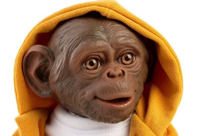 Veselé a roztomilé opičí miminko bez zvuku s měkkým látkovým tělem. Hlava a končetiny jsou vyrobené z kvalitního vinylu. Ruce a nohy jsou k tělu přichyceny kloubem. Opičí miminko je polohovací a může i sedět nebo se dá pověsit za ruce nebo nohy. Velikost 32 cm. Ručně vyrobeno ve Španělsku, baleno v dárkové krabici. Doporučený věk od 3 let.