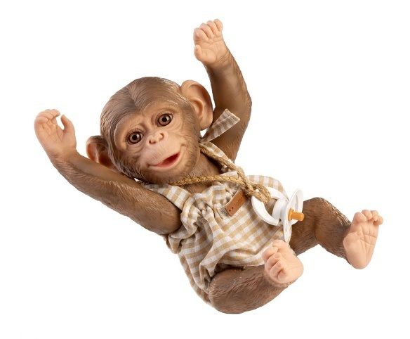 Veselé a roztomilé opičí miminko bez zvuku s vinylovým tělem s možností koupání, na kterém je zachycen věrohodně každý detail tohoto zvířecího mláďátka včetně různých záhybů, kromě pohlaví. Opičku lze koupat, ale je potřeba dát pozor, aby se jí nenamočily řasy. Odlepené řasy nejsou pak důvodem k reklamaci. Ruce a nohy jsou k tělu přichycené kloubem. Opičí miminko je polohovací a může i sedět nebo se dá pověsit za ruce nebo nohy. Dudlík v balení slouží pouze jako doplněk. Velikost 32 cm. Ručně vyrobeno ve Španělsku, baleno v dárkové krabici. Doporučený věk od 3 let.