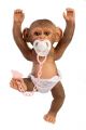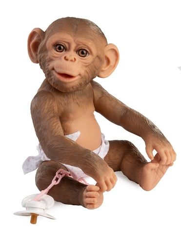 Veselé a roztomilé opičí miminko bez zvuku s vinylovým tělem s možností koupání, na kterém je zachycen věrohodně každý detail tohoto zvířecího mláďátka včetně různých záhybů, kromě pohlaví. Opičku lze koupat, ale je potřeba dát pozor, aby se jí nenamočily řasy. Odlepené řasy nejsou pak důvodem k reklamaci. Ruce a nohy jsou k tělu přichycené kloubem. Opičí miminko je polohovací a může i sedět nebo se dá pověsit za ruce nebo nohy. Dudlík v balení slouží pouze jako doplněk. Velikost 32 cm. Ručně vyrobeno ve Španělsku, baleno v dárkové krabici. Doporučený věk od 3 let.