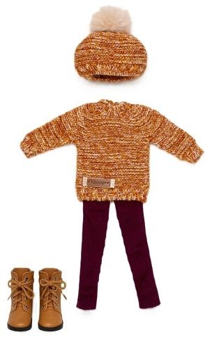 4dílný set: 3 kusy oblečení a botičky pro panenku Penelope velikosti 34 cm. Vyrobeno ručně ve Španělsku, baleno v igelitovém obalu na kartonové podložce. Doporučený věk od 3 let.
