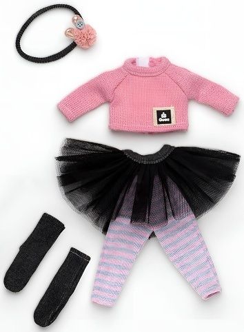 5dílný set: 4 kusy oblečení a ozdobná čelenka pro panenku Penelope velikosti 34 cm. Vyrobeno ručně ve Španělsku, baleno v igelitovém obalu na kartonové podložce. Doporučený věk od 3 let.