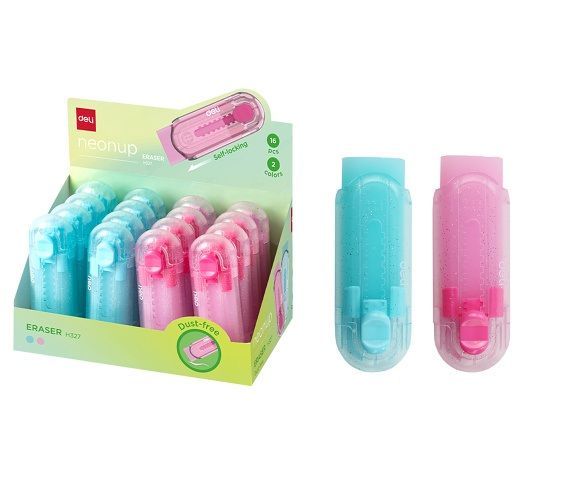 Vysouvací guma v plastovém obalu- velmi dobře gumuje- mix barev- rozměr: 75 x 25 x 17mm