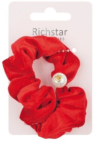 Gumička do vlasů sametová s perlou, červená