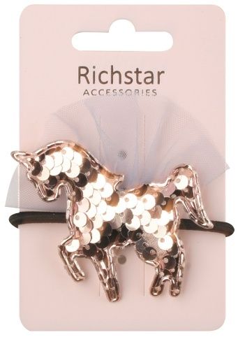 Gumička do vlasů jednorožec s glitry Elastická gumička do vlasů s krásným jednorožcem se hodí pro všechny druhy vlasů. Jednorožec pomůže oživit každý účes!