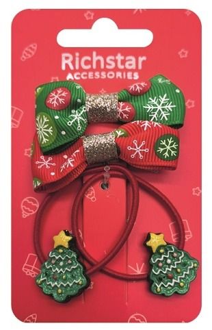 Vánoční gumičky se sponkami do vlasů Vánoční doplňky do vlasů oživí každý účes! Vhodné pro malé i větší parádnice. Dvě gumičky a dvě sponky na kartě. Rozměr sponky je cca 5 cm.