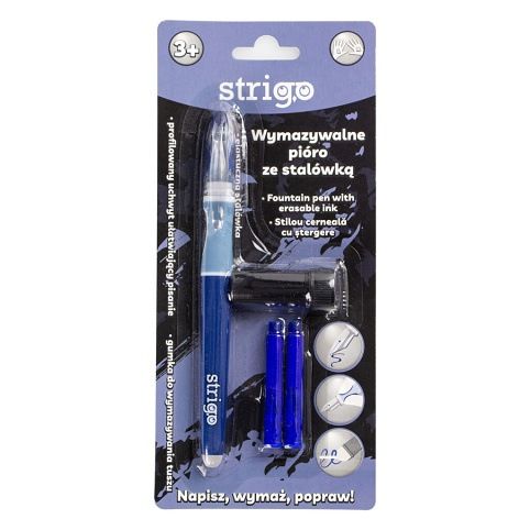 Plnící pero na bombičky, které lze gumovat. Pero má ergonomický úchop. Zabalené na blistru včetně 2 ks bombiček a čistítka hrotu. Vhodné pro praváky i leváky.