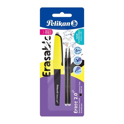 Gumovací pero Pelikan, 1ks a 2 náplně na blistru, černé
