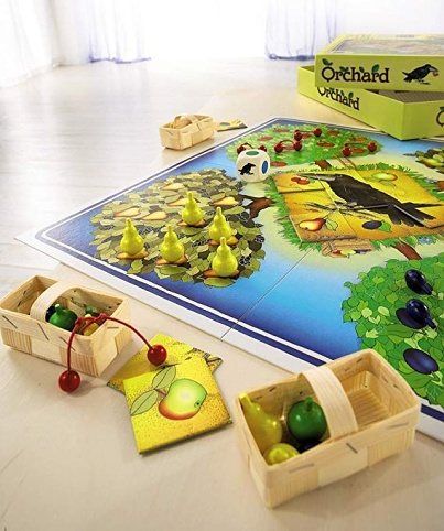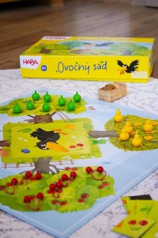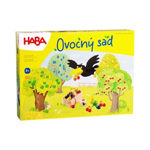 Haba Společenská kooperativní hra Ovocný sad CZ verze. Děti vyhrají nad havranem tehdy, když posbírají ovoce ze sadu dříve, než bude poskládané puzzle s havranem. 2-4 hráči, 15 minut.