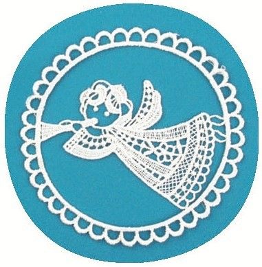 Háčkovaný troubící andílek v kruhu 10cm