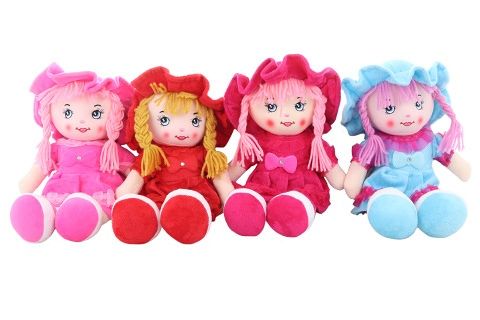 Látková panenka o velikosti cca 35 x 14 x 8 cm. Panenka po zmáčknutí bříška zpívá. Napájení na 3 AG13 baterie (jsou součástí). Panenka má měkké tělíčko. Věk 0+