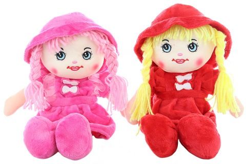 Látková panenka o velikosti cca 35 x 14 x 8 cm. Panenka po zmáčknutí bříška zpívá. Napájení na 3 AG13 baterie (jsou součástí). Panenka má měkké tělíčko. Věk 0+