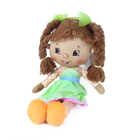 Rozkošná hadrová panenka s copy je vysoká 50 cm. Panenka má hnědé vlásky a krásné šatičky. A co ty? Už máš svou hadrovou panenku? Panenka je balena na krásné kartě a je tak vhodná i jako dárek.