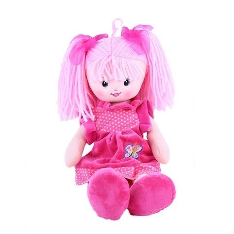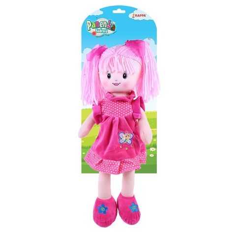 Rozkošná hadrová panenka s copy je vysoká 50 cm. Panenka má růžové vlásky a krásné růžové šatičky. A co ty? Už máš svou hadrovou panenku?