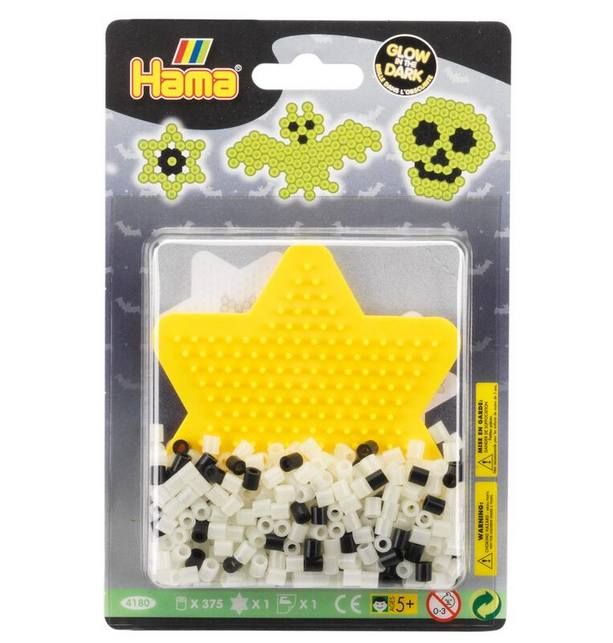 Balení obsahuje: cca 375 kusů zažehlovacích korálků svítících ve tmě, podložka malá hvězda č. H270-03, zažehlovací papír.