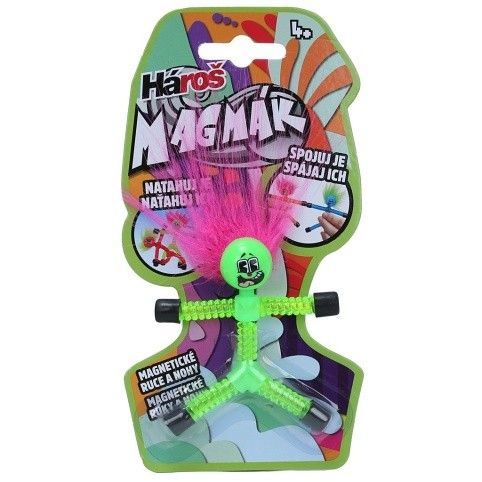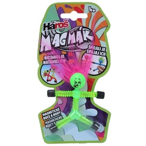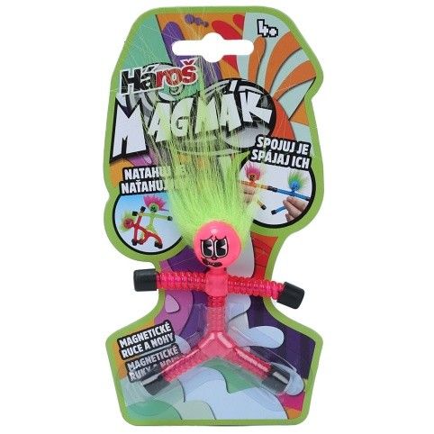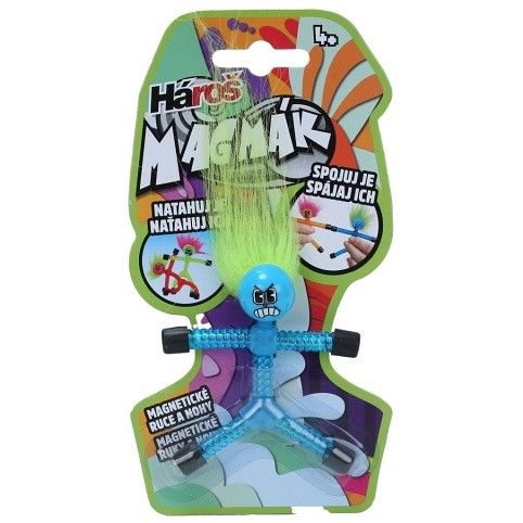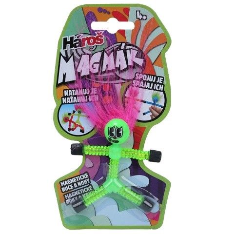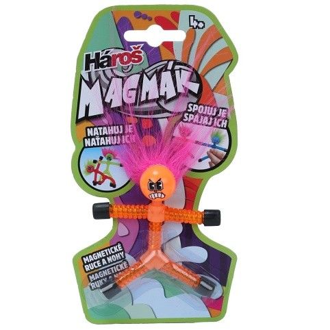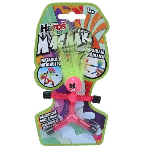 Hároš Magmák je vlasatá populární figurka. Natahuj je, spojuj je! Jsou vlasatí, jsou hubení a navzájem se přitahují. Jeho magnetickým rukám nic neunikne. Střapatá magnetická figurka, která se dá umístit na různé předměty. Balení obsahuje jednu figurku. Barvy: oranžová, zelená, modrá, růžová!!