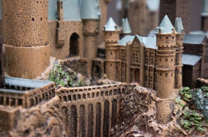 Detailní a ručně malovaný model Bradavic – Školy čar a kouzel, kterou založili čtyři největší kouzelníci svého věku: Godrik Nebelvír, Helga z Mrzimoru, Rowena z Havraspáru a Salazar Zmijozel. Model stojí na dřevěném podstavci a měří 34 × 35 × 32 cm. Unikátní sběratelský kus z dílny Noble Collection.