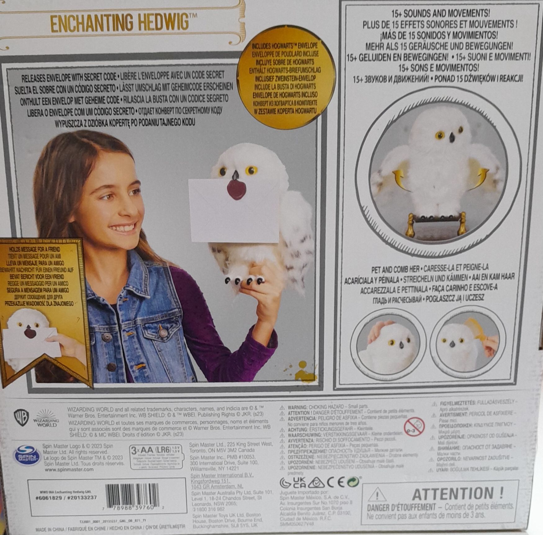 Interaktivní sova Hedvika umí otáčet hlavou až o 270°, mávat křídly a má hebounké peří. Dokáže rozeznat, jakým tónem hlasu na ni promluvíš a takovým tónem Ti i odpoví. Dej Hedvice obálku se zprávou, bude reagovat a vezme si ji do zobáku. Součástí balení jsou 3 AA baterie. Velikost 30cm. Vhodné od 5 let.