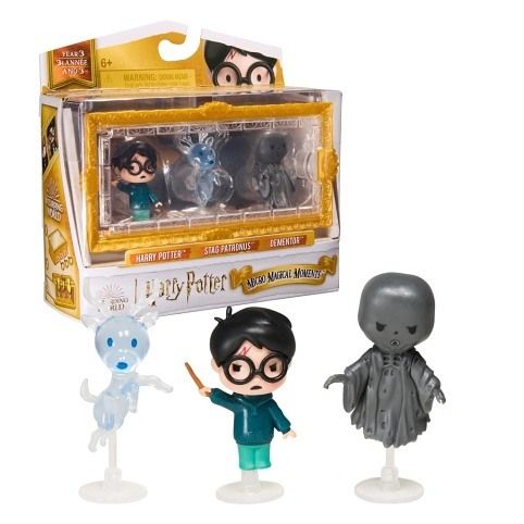 Prožijte nezapomenutelné filmové momenty se sadou figurek z kouzelnického světa Harryho Pottera a Vězně z Azkabanu z řady Micro Magical Moments! Toto multibalení obsahuje figurky Harryho Pottera, jeho jeleního patrona a mozkomora o velikosti 3,81 cm, průhlednou krabičku s oboustranným pozadím a tři stojany na figurky. Rozbalte si své postavičky a objevte jejich rozkošné detaily: Harryho brýle a jizva, průsvitný povrch jelena a mozkomorův plášť! Pozadí krabičky zobrazuje Černé jezero – detail, který si fanoušci a sběratelé Harryho Pottera zamilují. Postavy si můžete vystavit na stojanu, v krabičce nebo je postavit samostatně. Pro více strhujících možností vystavení se průhledné krabičky dají naskládat na sebe a pospojovat s ostatními sadami a figurkami z řady Micro Magical Moments (každá se prodává zvlášť)! Posbírejte je všechny a vytvořte si vlastní scény z kouzelnického světa! Hračky z kouzelnického světa Harryho Pottera jsou nezbytným dárkem pro holky, kluky a fanoušky, kteří mají rádi miniaturní hračky, sběratelské předměty, kouzelnické hůlky, akční figurky, panenky a doplňky pro panenky. Jsou skvělým dárkem k narozeninám, Vánocům nebo jako drobná pozornost. Přineste si domů sadu figurek z řady Micro Magical Moments a rozšiřte svou sbírku z Kouzelnického světa!