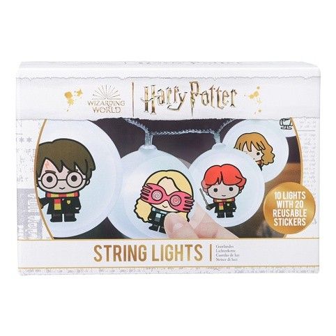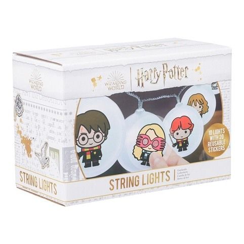 Světelný řetěz s licenčním motivem ze série Harry Potter. Řetěz se skládá z 10 světýlek a balení obsahuje 20 samolepek, které se dají opětovně použít. K provozu jsou nutné 2xAA baterie, které nejsou součástí balení.