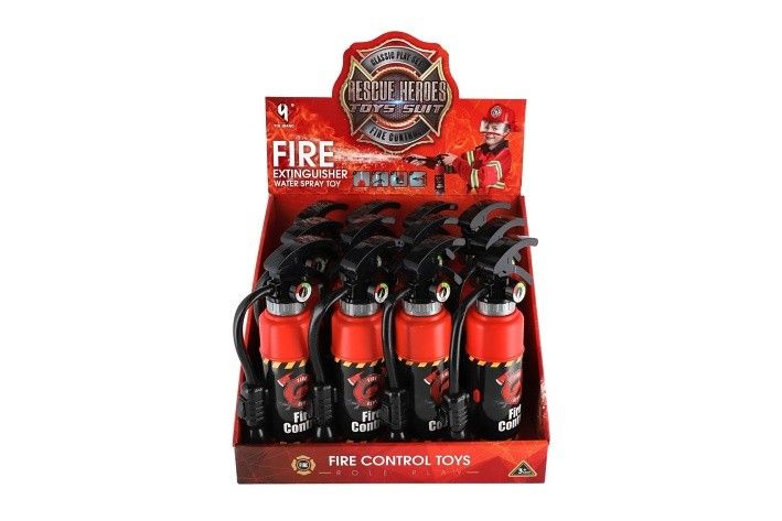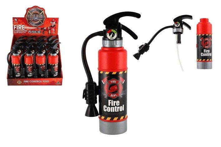 Děti mohou hasit imaginární požáry pomocí imitace hasicího přístroje. Hračka funguje tak, že se stiskne píst, načež voda vystříkne přes ohebnou šňůru .