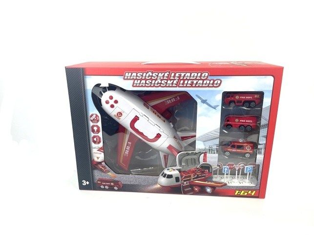 Hasičské letadlo s nákladním prostorem + 3 autíčka 1:64