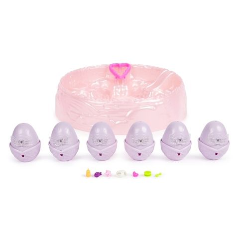 Oživ duhu s duhovým hracím setem Hatchimals! Díky vaší lásce hravá zvířátka Hatchimals ožívají novým barevným životem: vylíhněte si ve vodě vejce, které změní barvu vody, aby odpovídala postavičce uvnitř! Duhová líheň obsahuje 6 postaviček ve vejcích, 6 párů křídel, 6 doplňků pro malé pečovatele a hnízdo. Chcete-li začít líhnout, postavte vejce do hnízda, vyjměte křídla a pomalu naplňte srdce vodou. Během několika sekund se začnou vaše postavičky klubat z vajíček a voda začne vířit všemi barvami duhy! Vylíhněte si štěně, jednorožce, tučňáka a další postavičky v hravých pózách! Sklouzněte se na skluzavce uvnitř hnízda, nakrmte postavičky ve vysoké židličce a využijte při hraní doplňky pro malé pečovatele jako dudlík, misku se lžící, lahvičku a další. Hračky s překvapením Hatchimals si zamilují všichni, kteří mají rádi sběratelské předměty, akční figurky, malé hračky, panenky a domečky pro panenky. Jsou skvělým dárkem k narozeninám, Vánocům, do mikulášských balíčků i dárkem pro každou příležitost. Vylíhněte duhu s duhovým hracím setem Hatchimals!