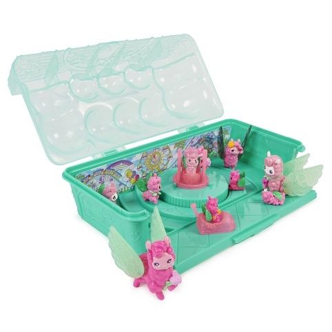 Objevte 2 rodiče, 1 velké dítě a příslušenství. Vylíhněte 3 malé děti a 4 sladká miminka lamy. Složte přední část balení, nastavte si tématické pozadí a užijte si dobrodružství v zábavním parku. Obsahuje: 10 Hatchimals CollEGGtibles, 2 doplňky, 1 grafická vložka, 1 sběratelský seznam, 1 návod. Vhodné od 5 let.