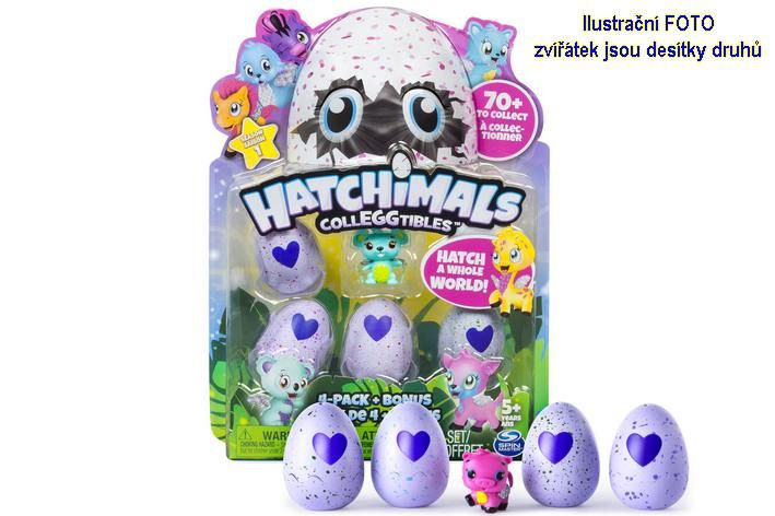 Sběratelská kolekce zvířátek Hatchimals. Zahřeješ srdíčko na vajíčku a když změní barvu, můžeš vajíčko promáčknout a zjistit, jaké zvířátko máš uvnitř. Možno posbírat na 70 různých zvířátek v několika rodinách. Součástí je i bonusové zvířátko.
