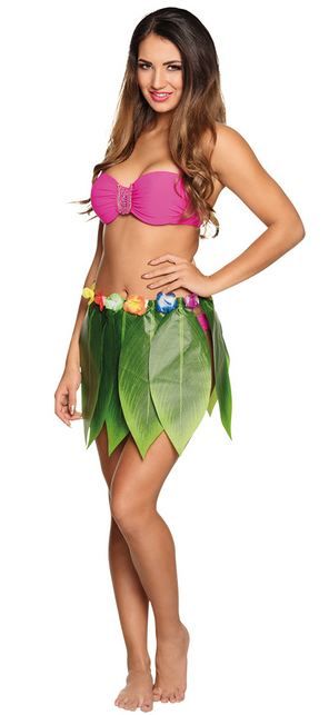 Havajská sukně, zelená z palmových listů s květy kolem pasu.. Zajímavá sukně na letní párty. Materiál: 92% polyester, 8% elastan