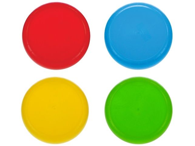 Házecí disk o velikosti 23 cm ve čtyřech barevných variantách - světle růžová, modrá, žlutá, zelená.