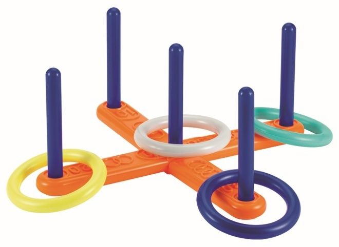Veselá hra házení kroužků na kříž pro malé i velké. Podporuje motoriku, soustředění a trpělivost. Rozměry sestaveného výrobku: 41x34x13,5 cm.Vhodné pro vnitřní i venkovní použití. Plast.