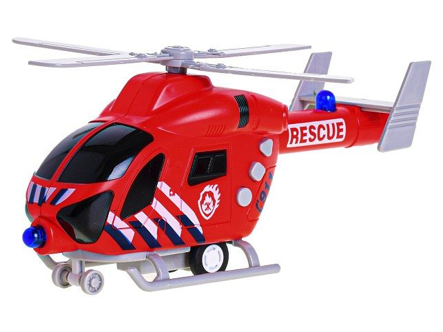 Helikoptéra hasiči 20cm na setrvačník na baterie se světlem a zvukem v krabičce