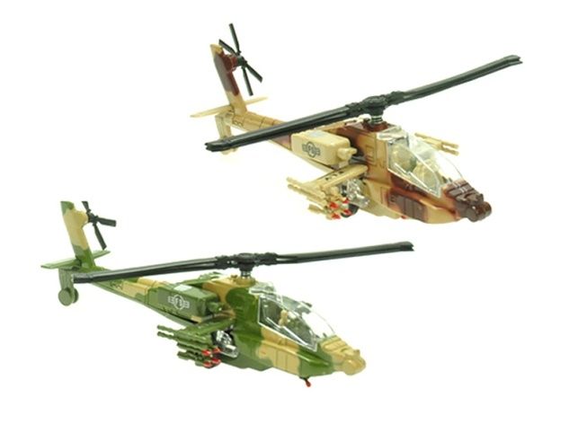 Helikoptéra vojenská 20cm kov zpětný chod na baterie se světlem a zvukem, 2 barvy
