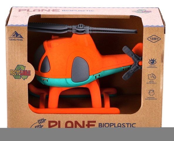 Helikoptéra oranžová/zelená z bioplastu pro nejmenší děti od 18+ měsíců. Dva druhy zelená/oranžová.