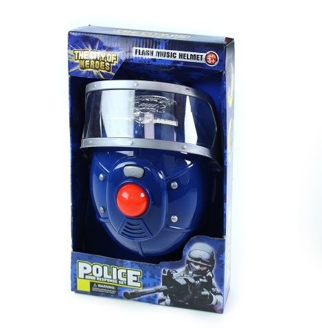 Praktická helma s ochranným krytem pro malé policisty! Tento kvalitní kousek je vyroben z plastu a zdoben odznakem na přední straně. Navíc při stisknutí tlačítka helma bliká a hraje. Velikost helmy si můžeš nastavit podle vlastní hlavy! Tak zažij opravdickou záchrannou akci. Součástí balení jsou 3 ks baterií typu AG13. UPOZORNĚNÍ: Tato hračka nezajišťuje ochranu.