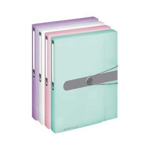 Box na spisy easy orga Pastell A4/4 cm, PP, zavírání gumičkou na plastový kroužek, kapacita 400 listů, nalepený štítek na hřbetu, lila
