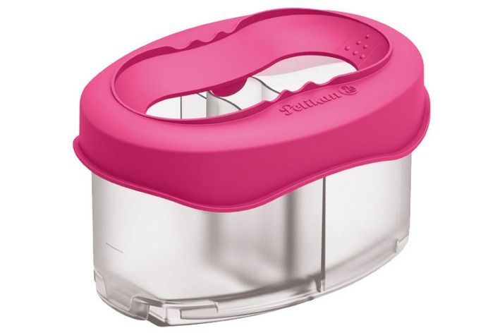 Bezpečnostní kelímek na vodu má 3 přihrádky - na čistou vodu, na špinavou vodu a na štětce. Ryska na spodní části kelímku ukazuje maximální hladinu vody, při které se při převrácení kelímku voda nevylije. Na vrchní části kelímku jsou drážky na odkládání štětců.
